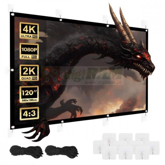 Ekran został zaprojektowany z myślą o maksymalnej wygodzie użytkowania. Montaż jest niezwykle prosty i szybki wystarczy zawiesić ekran na dołączonych haczykach lub zamocować go za pomocą linek. Dzięki tej elastyczności instalacji, ekran idealnie sprawdzi się zarówno w domu, jak i w biurze, sali konferencyjnej, szkole czy nawet podczas plenerowych pokazów.