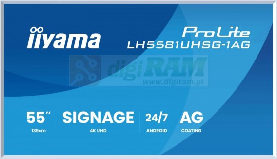 Monitor 55 cali LH5581UHSG-1AG 24/7,VA,ANDROID 14,4K, 2x10W, WiFi, UCHWYT CIENNY, 2xHDMI, USB-C, RJ45, IR, 2xUSB, WHITE