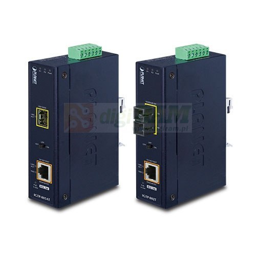 Przemysłowy gigabitowy konwerter multimedialny PLANET IGTP-80xT łączy konwersję nośników Ethernet (z 1000BASE-X do 10/100/1000BASE-T) z wtryskiwaczem 802.3at Power over Ethernet Plus (PoE+), aby zapewnić zarówno moc wyjściową do 30 watów, jak i wysoką prędkość transmisji danych do PD (zasilanych urządzeń) zainstalowanych w odległym obszarze, gdzie wymagany jest wystarczający i niezawodny pobór mocy. Światłowodowy port uplink 1000BASE-X zapewnia długodystansową, szybką i stabilną transmisję danych do zdalnej sieci rdzeniowej. Specjalny i wygodny system zasilania IGTP-80xT obsługuje wejście zasilania 12~48V DC lub wejście zasilania 24V AC dla redundancji zasilania i elastyczności operacyjnej.