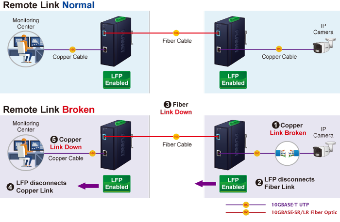 Link Fault Pass-through to funkcja sieciowa. Ułatwia wykrywanie i propagację usterek lub błędów łącza z jednego urządzenia sieciowego do drugiego. Pomaga utrzymać niezawodność sieci i minimalizuje przestoje, umożliwiając urządzeniom dynamiczne reagowanie na awarie łączy. Link Fault Pass-through usprawnia wykrywanie usterek i umożliwia szybsze rozwiązywanie problemów i rozwiązywanie problemów.
