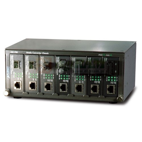 MC-700 oferuje elastyczne i skalowalne rozwiązanie do instalacji media konwerterów. W każdym slocie MC-700 znajduje się niezależny zasilacz, dzięki czemu każdy konwerter może być wymieniany na gorąco bez powodowania przerw w pracy innych konwerterów. Konwertery mediów mogą być podłączone i odtwarzane w dowolnym momencie. Każda wnęka MC-700 może być wypełniona dowolnym konwerterem mediów PLANET, serii FT, GT, VC-20x i ICS, aby zapewnić konwersję mediów między światłowodami, przewodem telefonicznym i liniami szeregowymi do linii miedzianych.