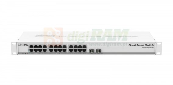 Cloud Smart Switch 326-24G-2S+RM to 24-portowy przełącznik Gigabit Ethernet z obsługą SwOS z dwoma portami SFP+ w obudowie rackowej 1U, która zapewnia łączność z prędkością przewodową z kilkoma nowymi funkcjami przełączania.